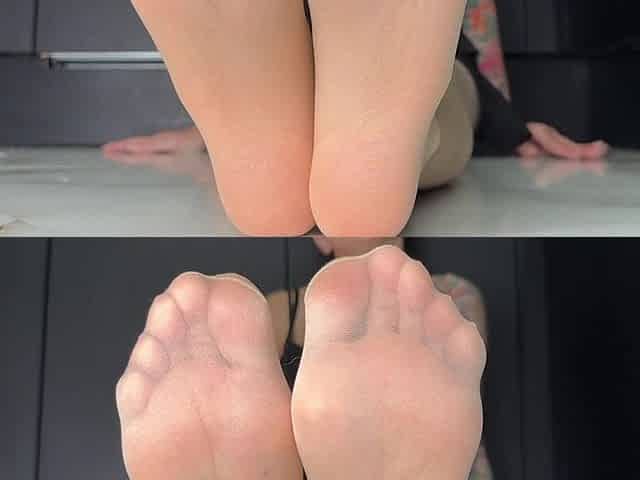 Pantyhose Soles, Tan Pantyhose on Me, Long Toes and Big Feet