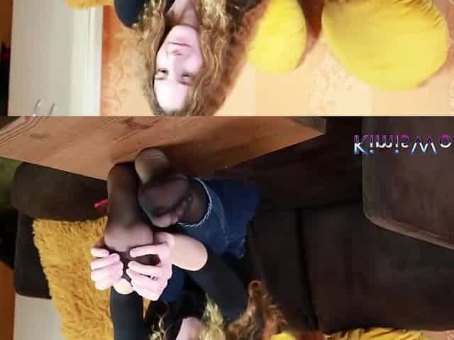 Teasing him with my oiled feet and dark blue toes until he fucks them to eruption! ????