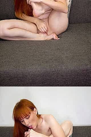 Sucks her toes during the time that masturbating
