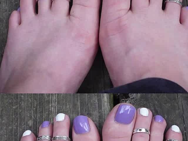 Purple and White Toes Wiggling Wearing Toe Rings