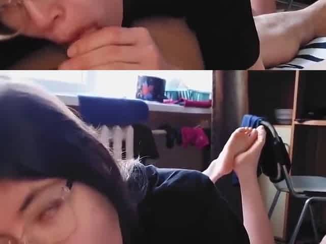 Nerdy Chick Gives Boyfriend Blowjob And Her Soles