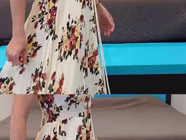 Long Floral Dress, White Toes and Tan Mule Heels Try on