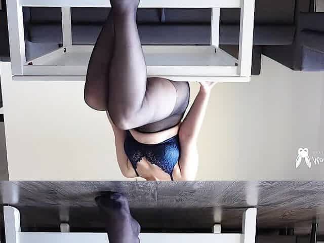 Morrigan Havoc Crossing and Uncrossing Legs in Ebony Hose (full vid)