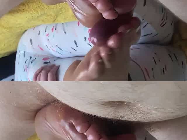 Amateur Footjob #62 Sweet Toes Footjob With Glove Handjob Cum