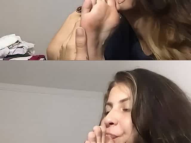 Two Cute College Babes Worship Each Others Feet And Toes On The Bed