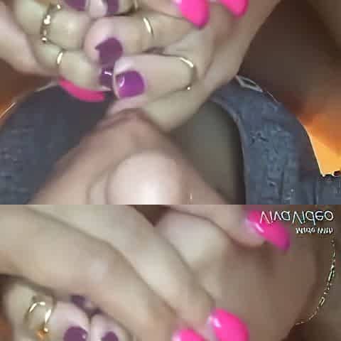 Girlfriend With Yellow Toe Nails Massages My Tiny Black Dick With Her Feet