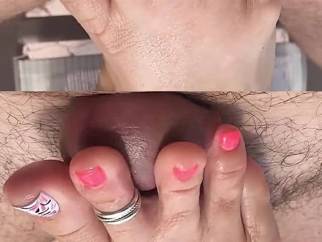 gf footjob three pink toes made me blast off