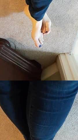 My freshly pedicured bare feet in jeans.