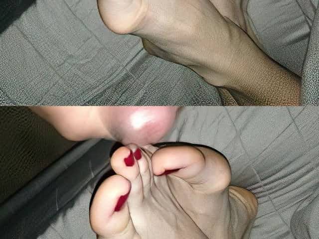JBlack And PeggyBlack : red toes footjob and squirt part 5