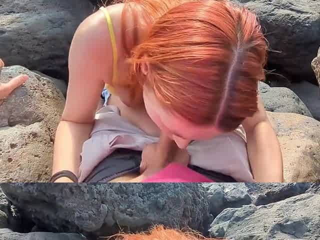 Pov: Risky Public Blowjob, My Readhead Girlfriend Sucks My Dick On The Beach (dia Ita)