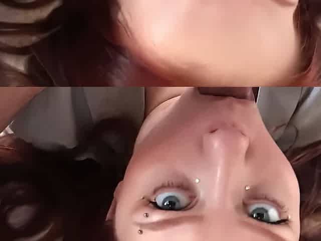 Teen with pierced tongue sucks dick like a pro and gets her whole face covered with thick cum