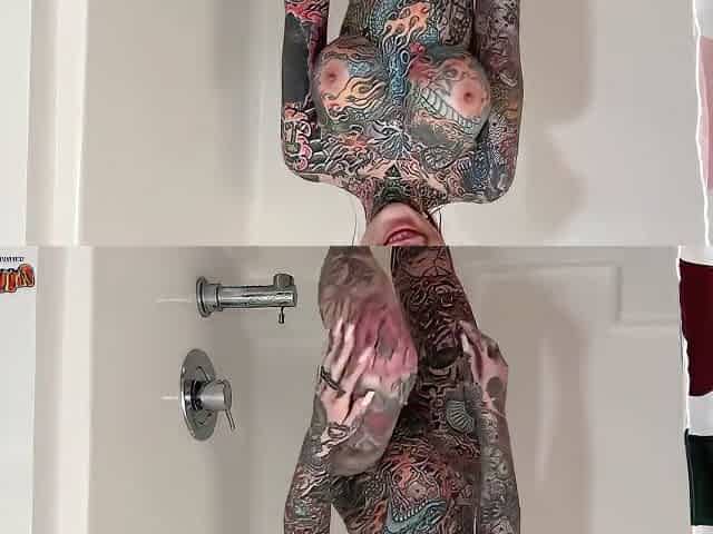 Tattooed Milf With Big Tits & Split Tongue Masturbating In Shower Until She Squirts