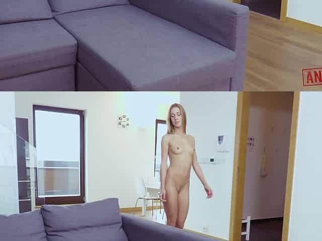 Slender young girl with cum on her tongue in high-quality 4K resolution