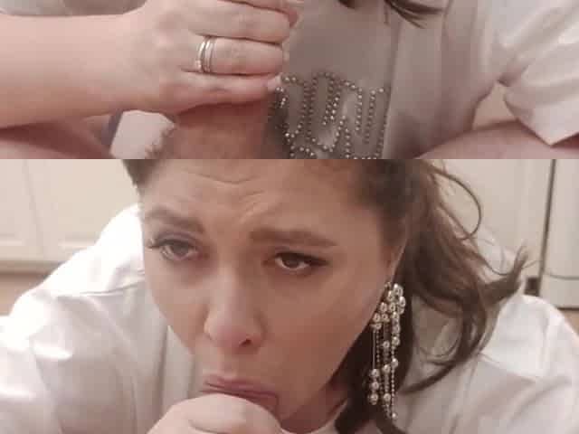 Milf Big Tits - Sexy Milf With Big Tits Shows Her Blowjob Skills And Swallows Cum ( )