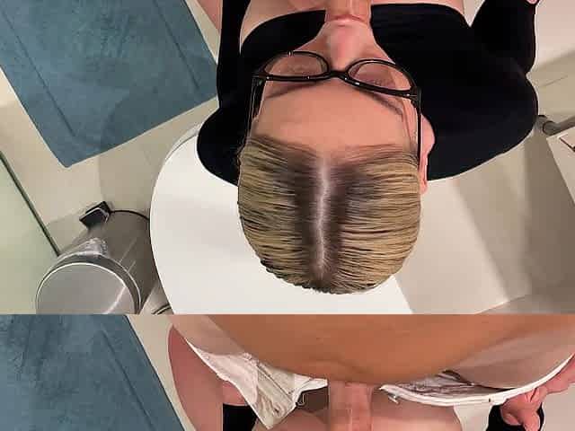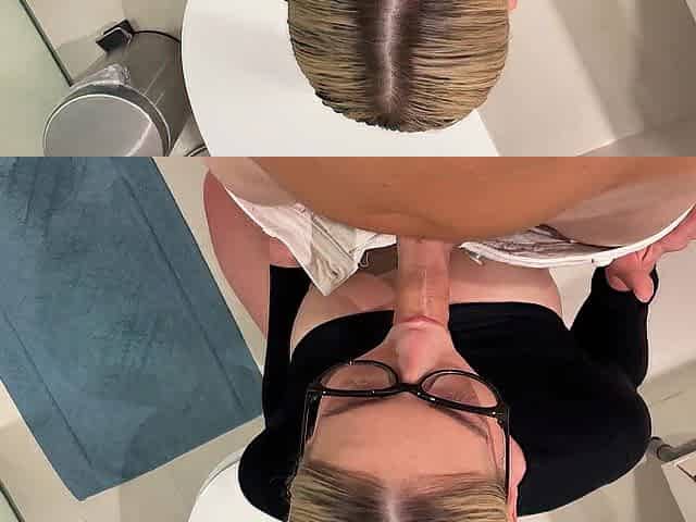 "Petite blonde with pierced tongue sucks guy's cock like a pro"