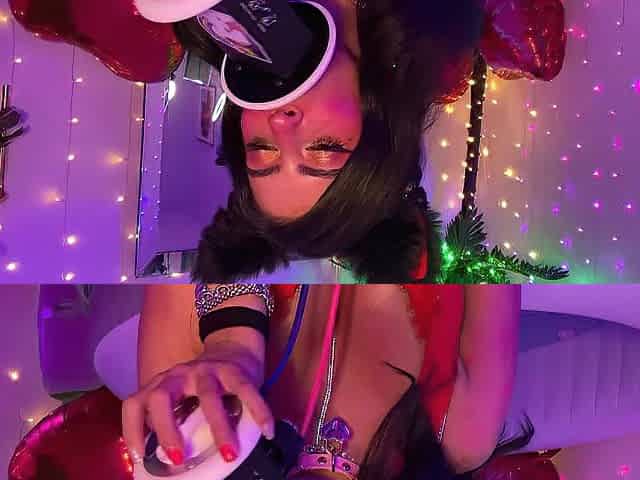 Cute Egirl spitting Ahegao playing with melons and riding
