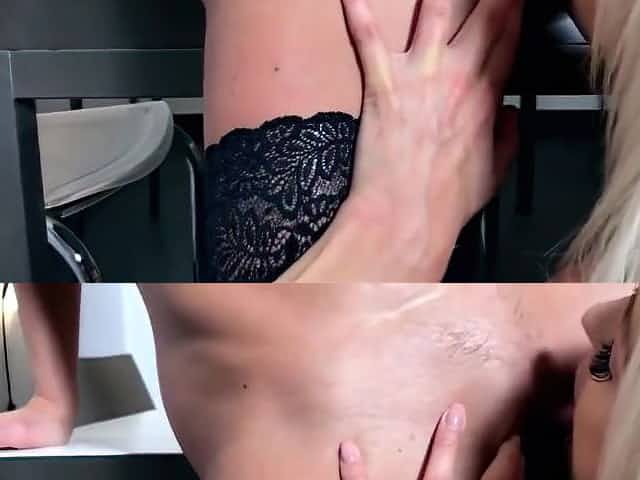 Naughty Lesbians In Stockings Play With Soft Tongues On The Table With - Carla Cox