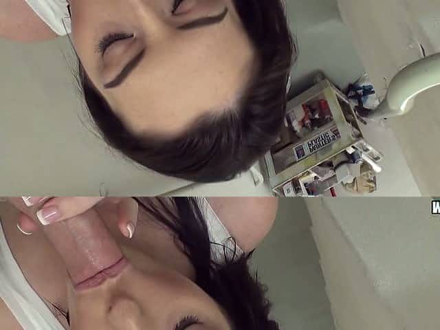 Brunette bombshell with big boobs gives tremendous blowjob in POV
