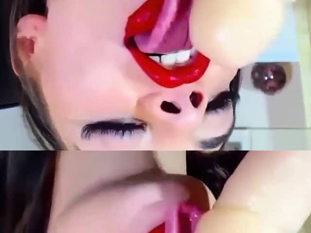 Sloppy Blowjob by a Russian Camgirl with Long Tongue