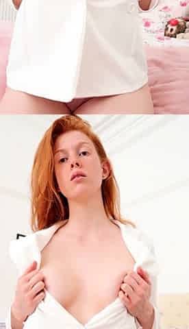 Beautiful redhead uses toy to masturbate