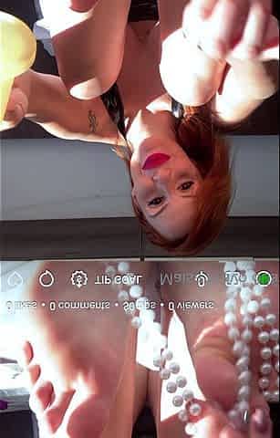 Webcam blonde plays with a toy