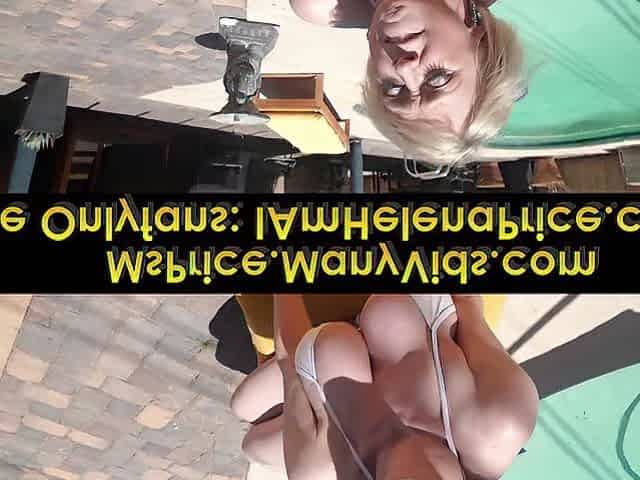 Sabrina Sweet masturbating her twat with her fingers outdoor