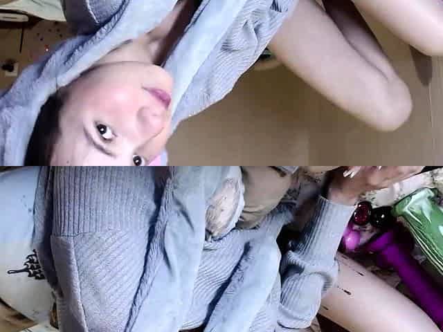 Petite Asian amateur with small tits toys on webcam