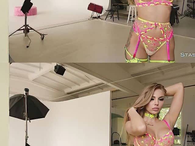 Sexy Blonde Babe With Big Boobs Strips Bra