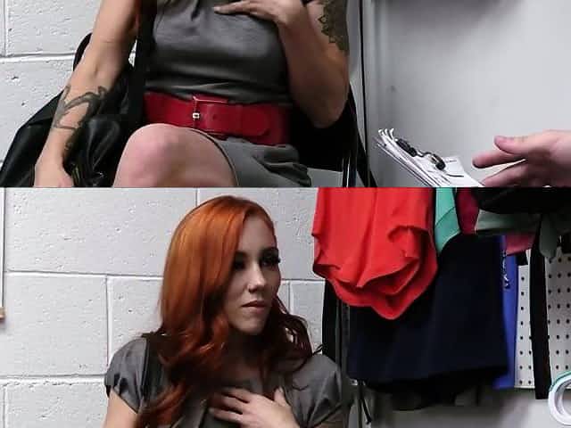 Redhead milf blows after getting busted for stealing