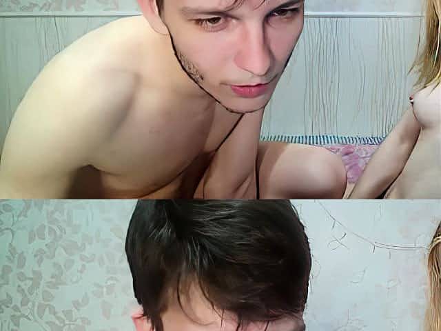 Cute slim teen with pigtails suck and ride hard cock live at