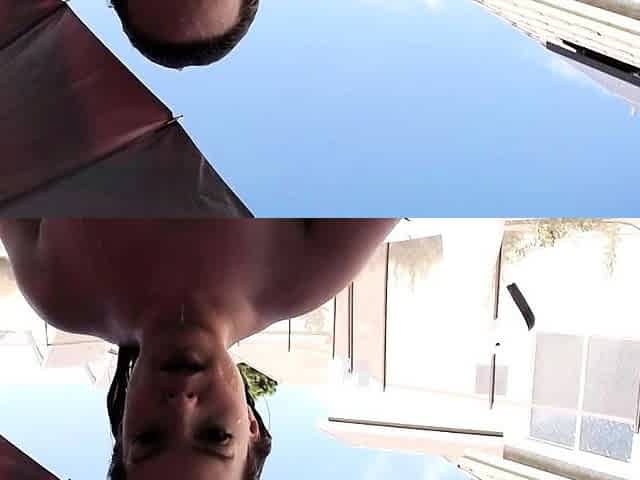 CleoLust topless busty brunette shows doggy style at the