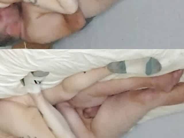 Jerking little lover POV bae strokes cock while touching her muff