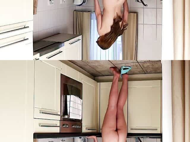 Brown-haired chick Ann Joy is touching her hole in the kitchen
