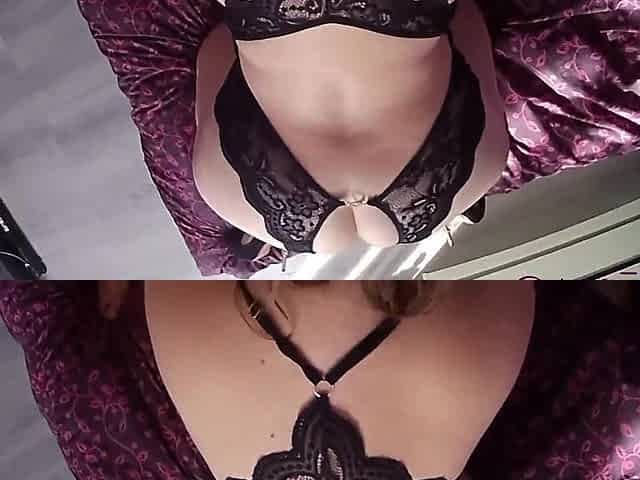 My Wife in Hot Lingerie Rides My Big Cock I Touch Her Big Natural Tits!
