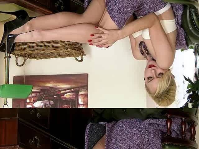 Blonde MILF in black lingerie Michele Nolimi is touching her hole