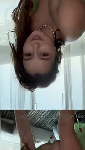 Gorgeous sweetheart Kirin Desado is touching her wet shaved pussy