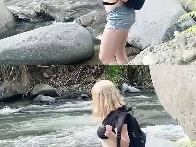 BEAUTIFUL BLONDE IS DISCOVERED NUDE TOUCHING HERSELF IN THE RIVER