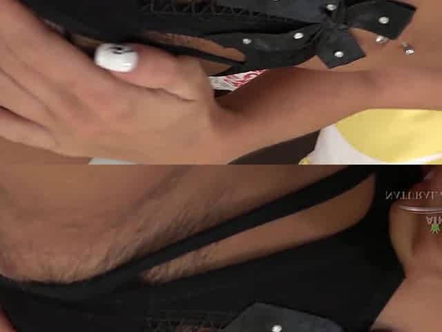 Flexible slender girlfriend Svetlana is touching her shaved pussy