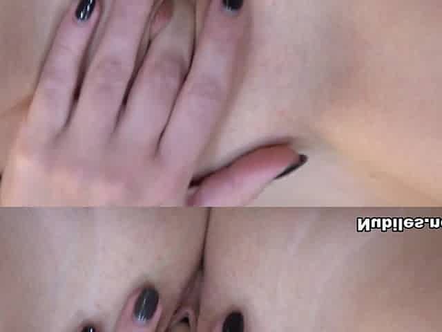 Aesthetic blonde Malusha is enjoying touching her shaved pussy