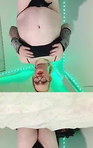 sissy in a chastity thong rips her nylons and bangs herself on a sex machine