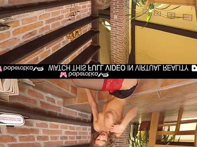 Solo gal, Sarah Kay,uses a large sex tool,in VR.