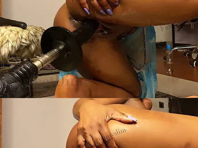 Black babe screwed mercilessly by large ebony sex-toy