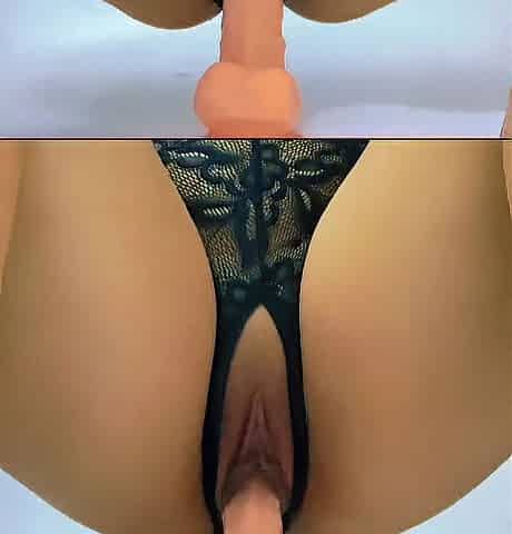 It's hard to imagine such a large sextoy fitting into such a taut gap