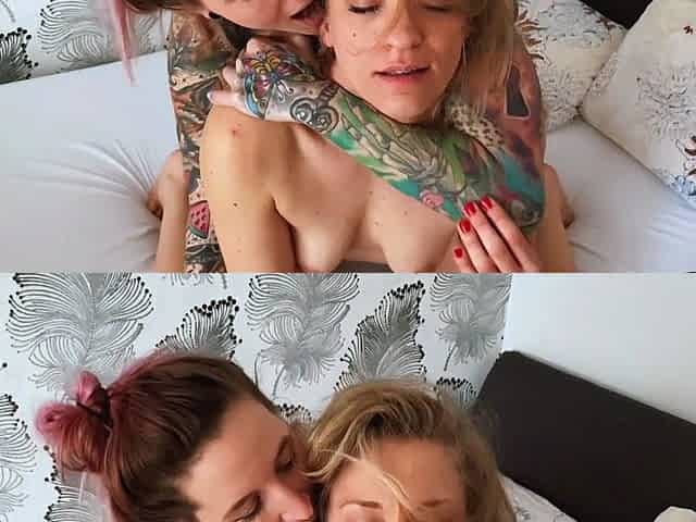 Blonde and brunette lesbian girls licking and toying