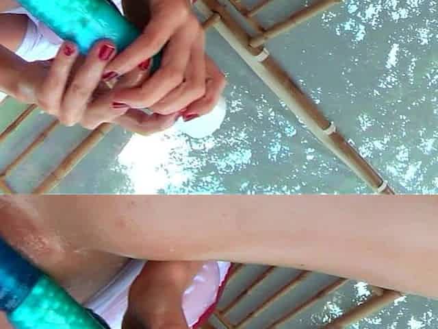 Blonde Poolside Tease with Toy and Footjob Ecstasy