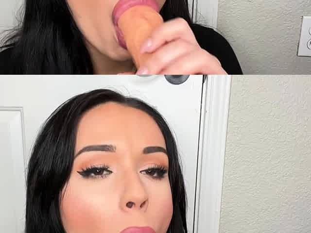 Trying the huge dildo that a fan gave me with a mini dress