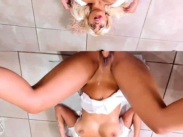 Big Boobed Blonde Masturbates With A Dildo In The Bathroom