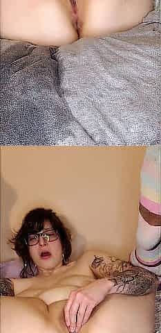 Hawt Romanian in Fishnet Nylons masturbates with fingers and glasdildo until REAL Climax