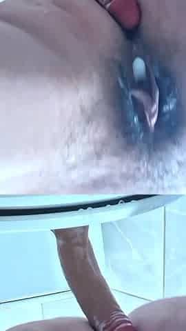 Purple Bitch is dildoing her anus