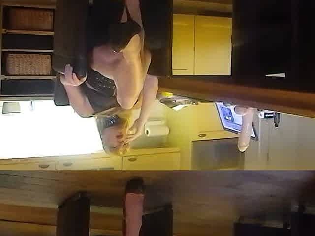 Ginger Babe Ass Up Riding Thick Dildo in Prone Style